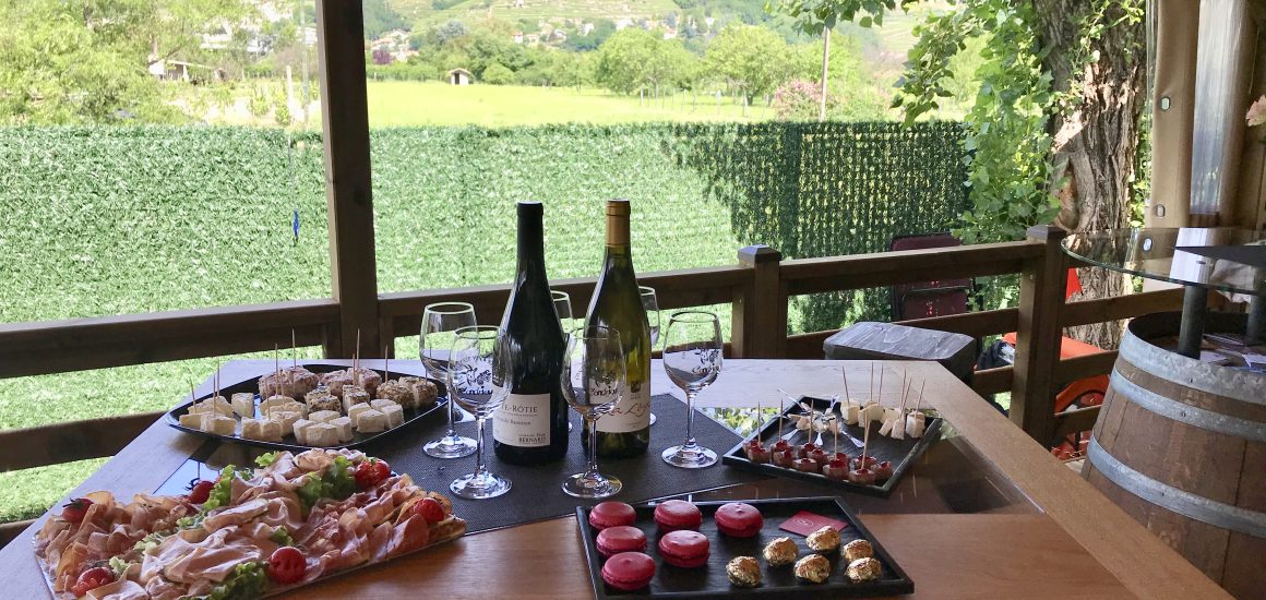 Entdecken Sie die großen Appellationen des nördlichen Rhonetals, besonders Condrieu, Côte-Rôtie, Saint-Joseph, Weine aus Seyssuel sowie die speziell für Sie ausfindig gemachten g.g.A. Vins de Pays. Zu den angebotenen Weinen werden Platten mit geschmacklich abgestimmten (süßen/herzhaften) Produkten serviert. Je nach Anzahl und Art von Weinen, die Sie probieren möchten, sind verschiedene Verkostungspauschalen verfügbar.