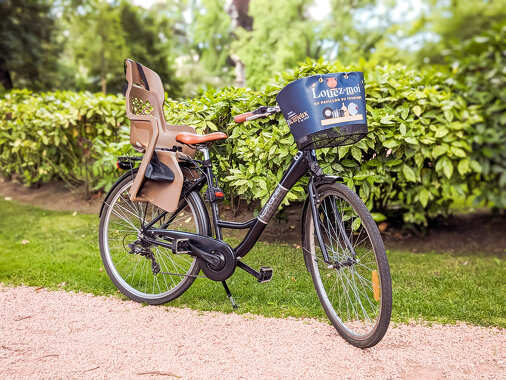 Begeben Sie sich zum Empfang des Tourismuspavillons, wo ein/e Reiseberater/in Ihnen beim Ausleihen Ihres Fahrrads behilflich sein wird. Setzen Sie Ihr Kind (maximal 22 kg) in den Tragesitz, schwingen Sie sich auf den Sattel und los geht's: Das Abenteuer wartet auf Sie!