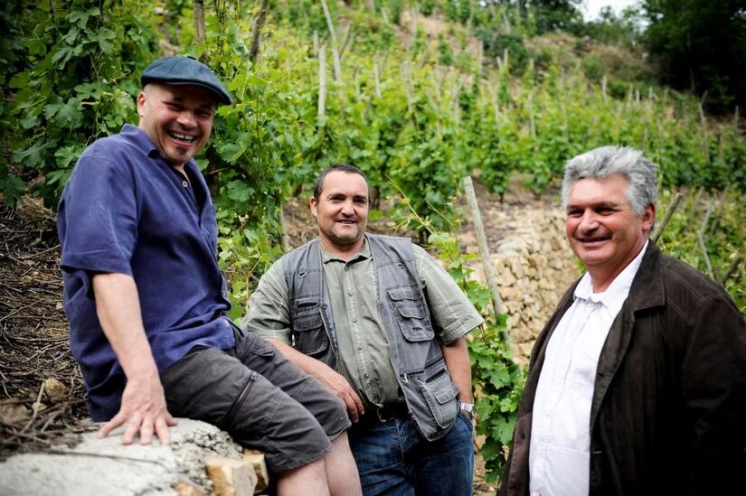 Yves Cuilleron, Pierre Gaillard und François Villard träumten davon, den Weinberg von Seyssuel wieder zu neuem Leben zu erwecken. Das haben sie mit Leidenschaft und viel Spaß an der Arbeit auch getan!