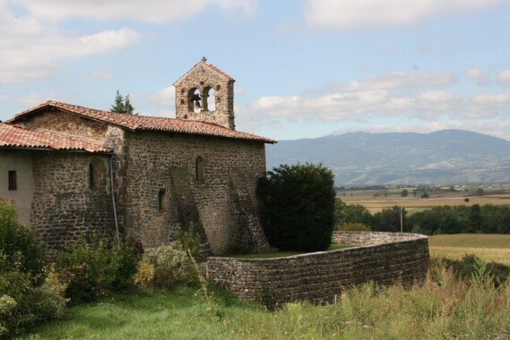 Rundgang auf dem Flachland und den Hügeln, mit Aussichten auf das Gebirge "Pilat", das Rhonetal, und die Hügel des Vienner Landes. Zu sehen: einigen alten Kreuze und befestigte Häuser.