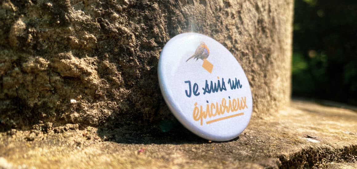 Photo d'un badge de la gamme Epicurieux de tout