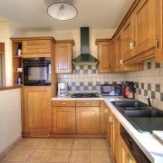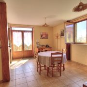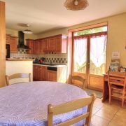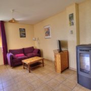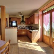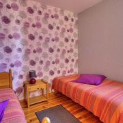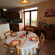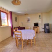 Die neben dem Besitzerhaus im erhöhten Erdgeschoss liegende Ferienwohnung bietet einen großen Wohnraum mit Küchenzeile und Bar, zwei Schlafzimmer für zwei Personen, ein Esszimmer, ein Bad und ein separates WC.