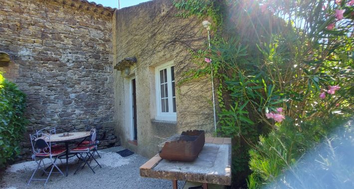 Entdecken Sie das Gîte Basilic, ein unabhängiges Ferienhaus für 4 Personen in einem alten Bauernhof, mit einer Terrasse im Gartengeschoss, alten Fliesen und Möbeln aus der Zeit.