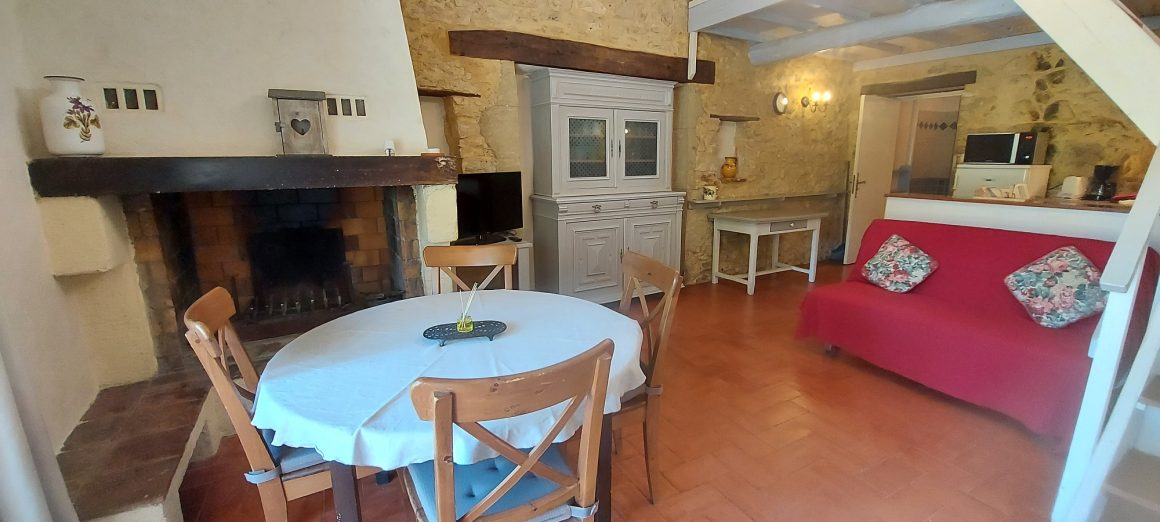 Entdecken Sie das Gîte Lavandin, ein unabhängiges Ferienhaus für 5 Personen in einem alten Bauernhof, mit einer Terrasse im Gartengeschoss, einem Kamin, alten Fliesen und Möbeln aus der Zeit.