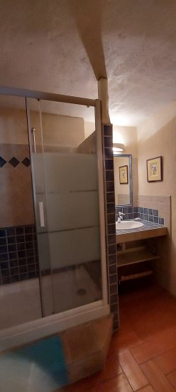 Das Gîte Lavandin besteht aus einem Schlafzimmer mit einem 140‑cm‑Bett, einer Mezzanine mit zwei 90‑cm‑Betten und einem Schlafsofa sowie einer ausgestatteten Küche, die auf ein Wohnzimmer geöffnet ist. Außerdem gibt es ein Badezimmer mit Waschbecken und Dusche sowie eine separate Toilette.
