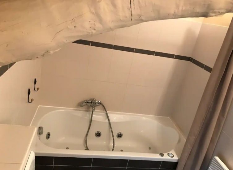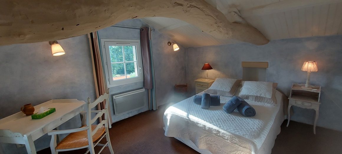 Zimmer Olivette: Dieses Dachzimmer befindet sich im zweiten Stock und verfügt über eine Klimaanlage, ein Badezimmer mit Badewanne und Toilette sowie einen Fernseher.