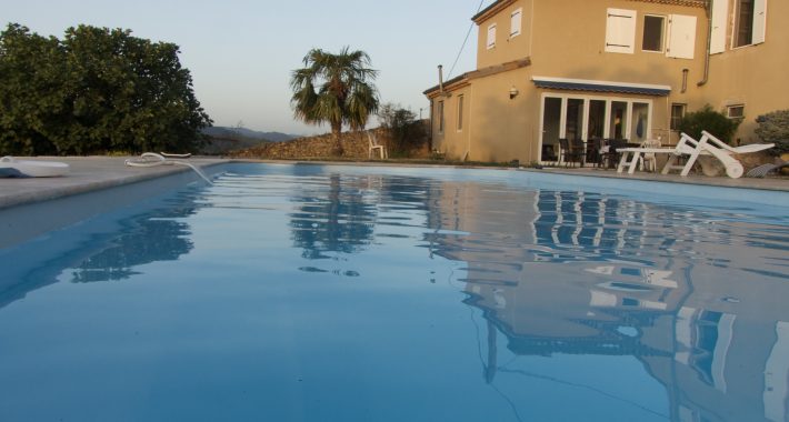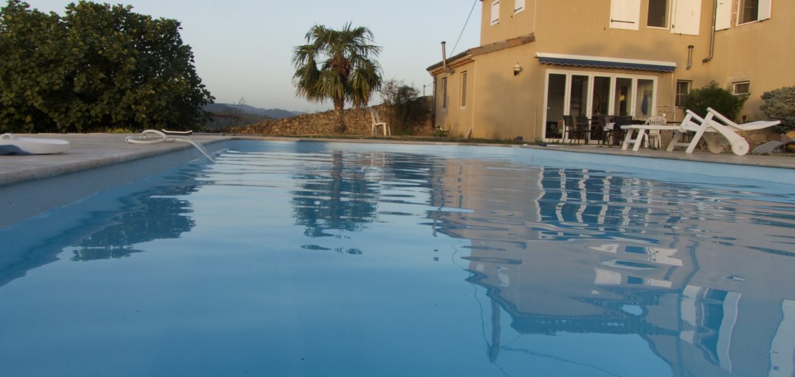 Das Schwimmbad und sein Panoramablick auf das Doux-Tal,