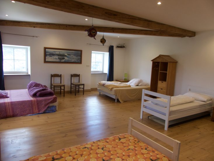 Es gibt 5 Gästezimmer mit einer Gesamtkapazität von 15 Personen (21, wenn die Gästezimmer und das Ferienhaus zusammen gebucht werden). Ideal für Praktika, Seminare, Künstlerresidenzen und Familienzusammenführungen!