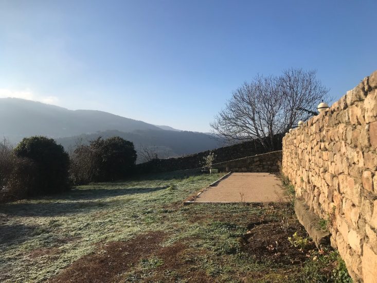 Roussanne, am östlichen Ende des Hauses, öffnet seine Fensterläden auf die Sonnenaufgänge, die das Tal überfluten. Dieses charmante, 16 m2 große Zimmer bietet ebenfalls einen Blick auf das Dorf und über den terrassenförmig angelegten Garten hinaus auf die Berge der Ardèche. Es verfügt über ein Queensize-Bett, das in zwei Einzelbetten umgewandelt werden kann, sowie über eine separate Toilette und ein eigenes Badezimmer mit Whirlpool-Badewanne.