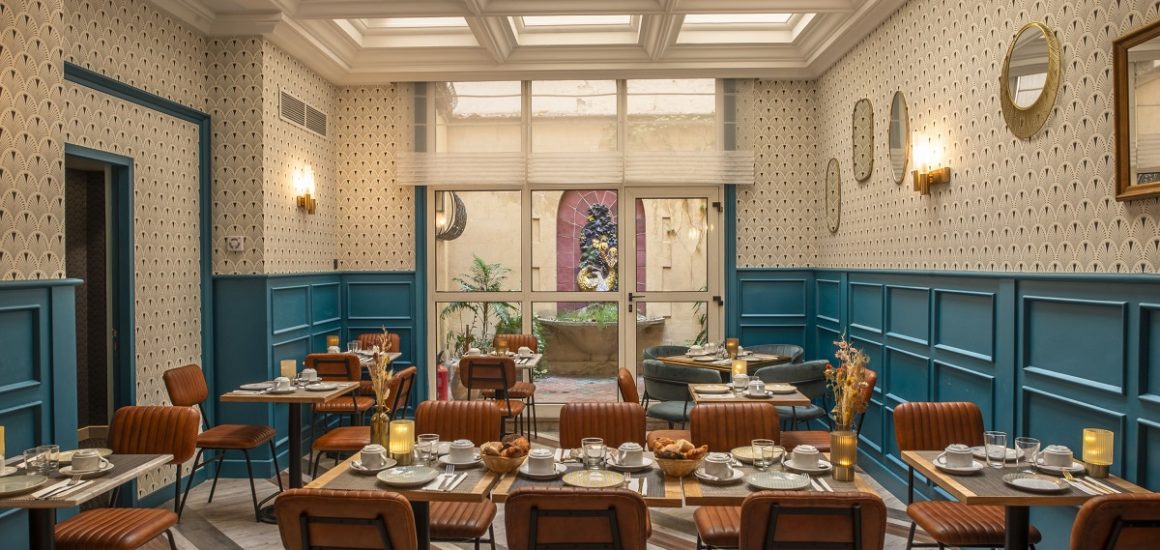 Am Eingang der Altstadt, an der Hauptstraße, die zum Palais-des-Papes führt, bietet das Hotel Bristol eine warme und komfortable Einrichtung. Linien, Farben und grafische Muster verleihen ihm die für seinen Stil charakteristische Art-Déco-Atmosphäre.