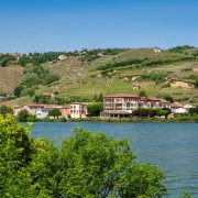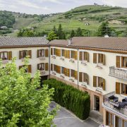 Das Hotel am Fuß der mit Weinstöcken bewachsenen Hänge von Condrieu ist ideal für Personen, die sich nach Ruhe sehnen. Die Einrichtung ist hell und in sanften, warmen Farben gehalten. Gelb, Ocker, Weiß … Kunstvoll gearbeitete Möbel, geblümte Vorhänge. Im Restaurant werden wohlschmeckende Gerichte nach lyonesischer Art mit südlichen Akzenten serviert.