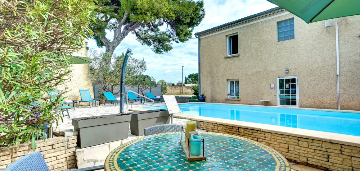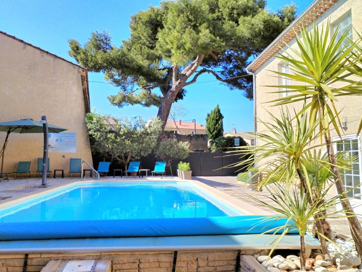 Das Herzstück des Ortes: Die Terrasse im Innenhof sorgt für Ruhe und Erholung, gegenüber dem Pool, ideal für Familien, Paare oder einfach nur, um sich nach einem Arbeitstag abzulenken.