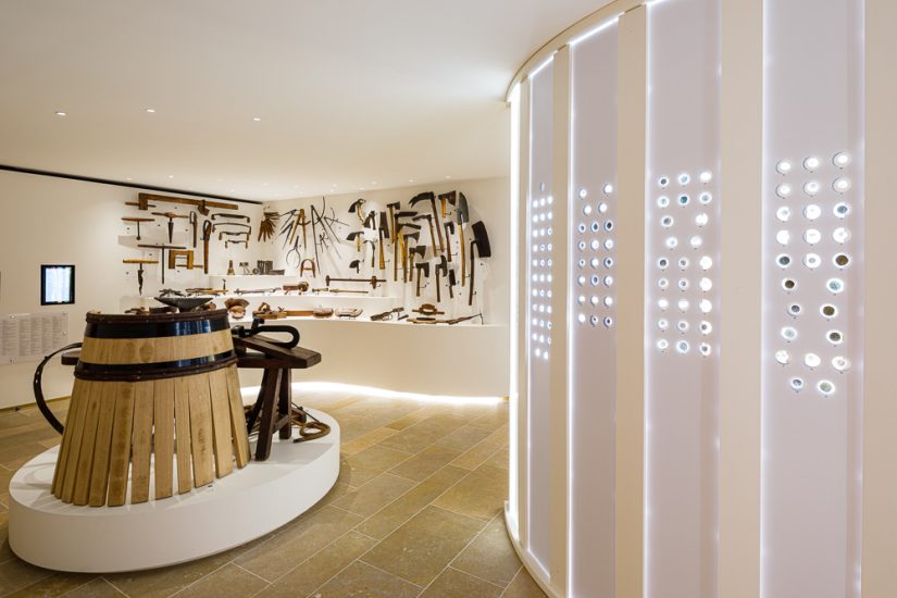 Museumsraum: das Museum im Weinkeller des Schlosses zeigt die Geschichte des Weinbaus, der Önologie und der Küferei im Laufe der Jahrhunderte. Als Höhepunkt dieses Rundgangs veranschaulicht eine Sammlung antiker Schätze das Servieren von Wein in der Antike.