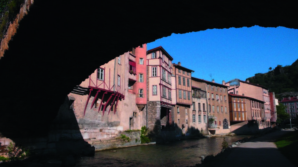 Ab dem 12. Jahrhundert führte diese Brücke über den Fluss Gère, einen Nebenfluss der Rhone, der schon dafür bekannt war, die Räder von Getreidemühlen, Hanfschlägern und Ölpressen anzutreiben.